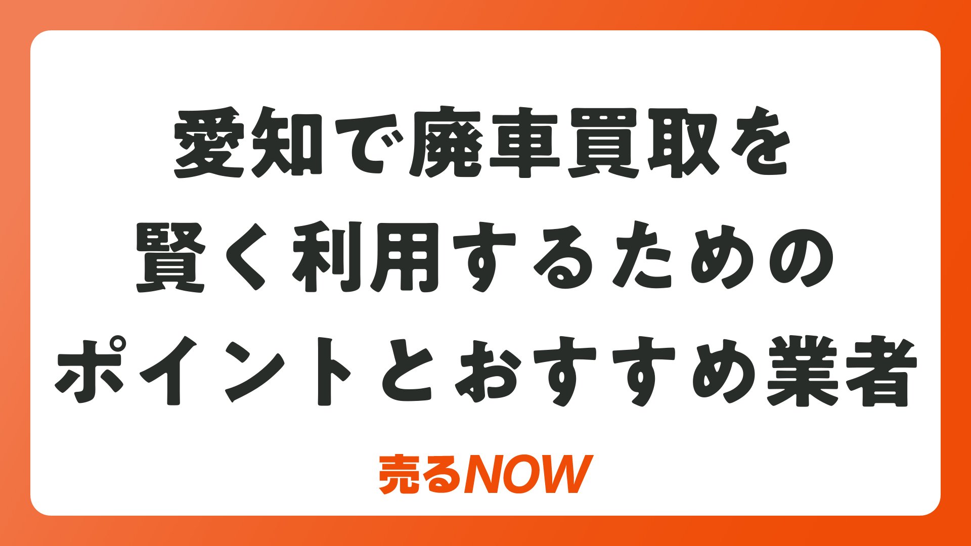 愛知で廃車を売るなら今すぐ査定を。確実な現金化とコストゼロで、ストレスフリーな処分が可能です。最適サービスを選んで賢く活用してください。