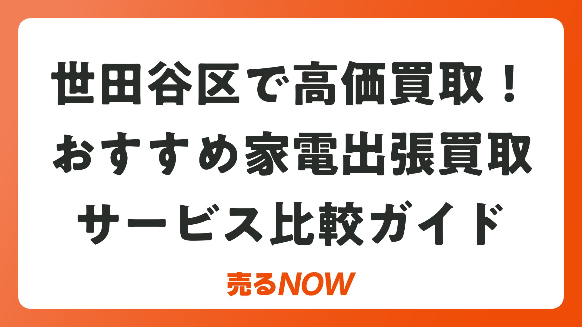 おすすめは出張買取MAX、アシスト、ecocolo、出張買取24時などのサービス。大型から小型まで幅広く対応し、世田谷区全域で即日・24時間利用可能。家電量販店商品強化で高額査定期待大。今日から不用家電を現金に変えましょう。
