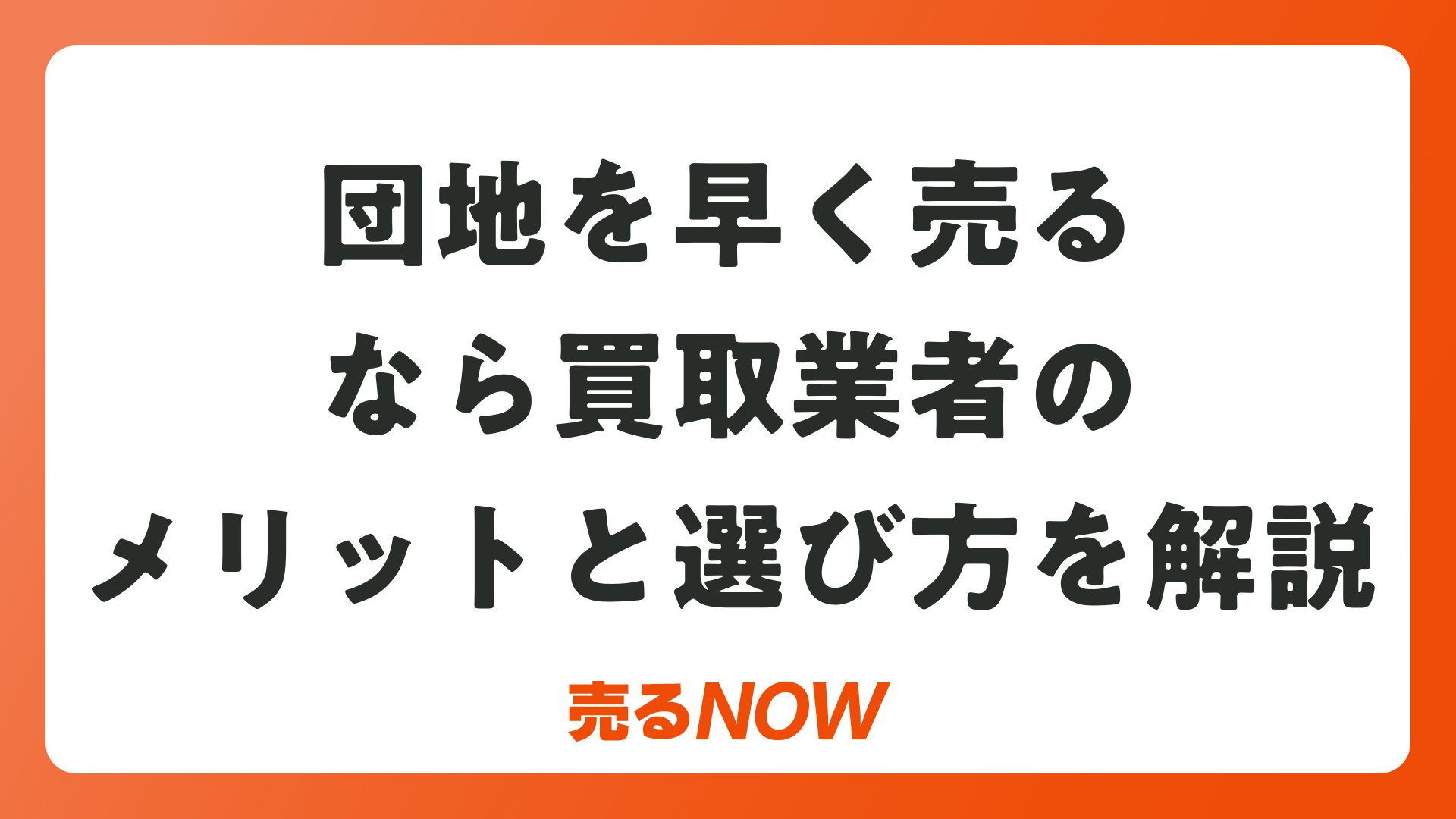 団地を早く売るなら買取業者のメリットと選び方を解説をまとめました